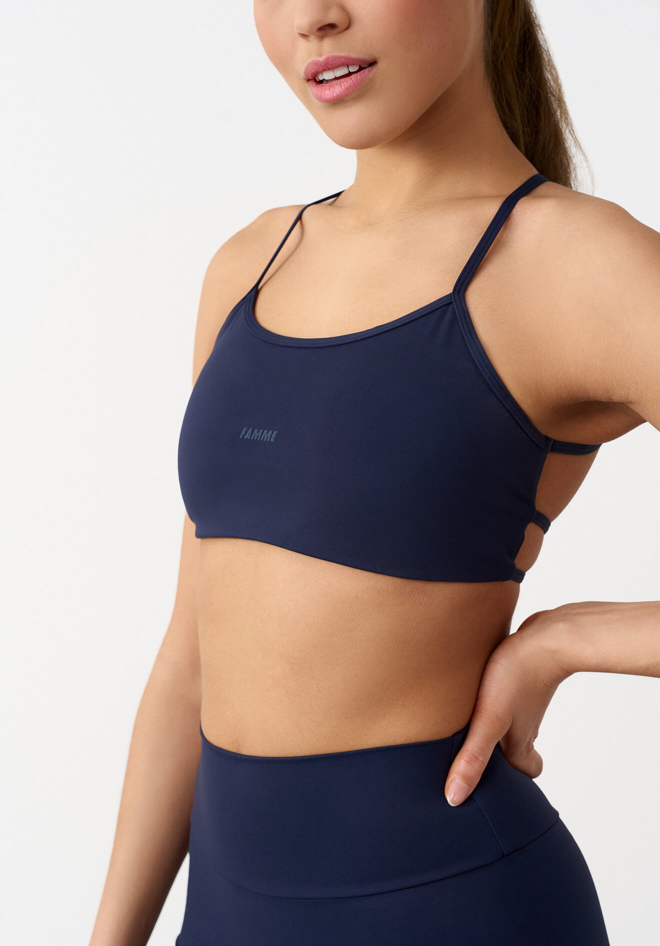 Signature Flex Sports Bra has a lighter support and is ideal for low/moderate intensity activities. The fabric is soft and wicks moisture away from the body. Match with shorts or tights from the Famme Signature collection.